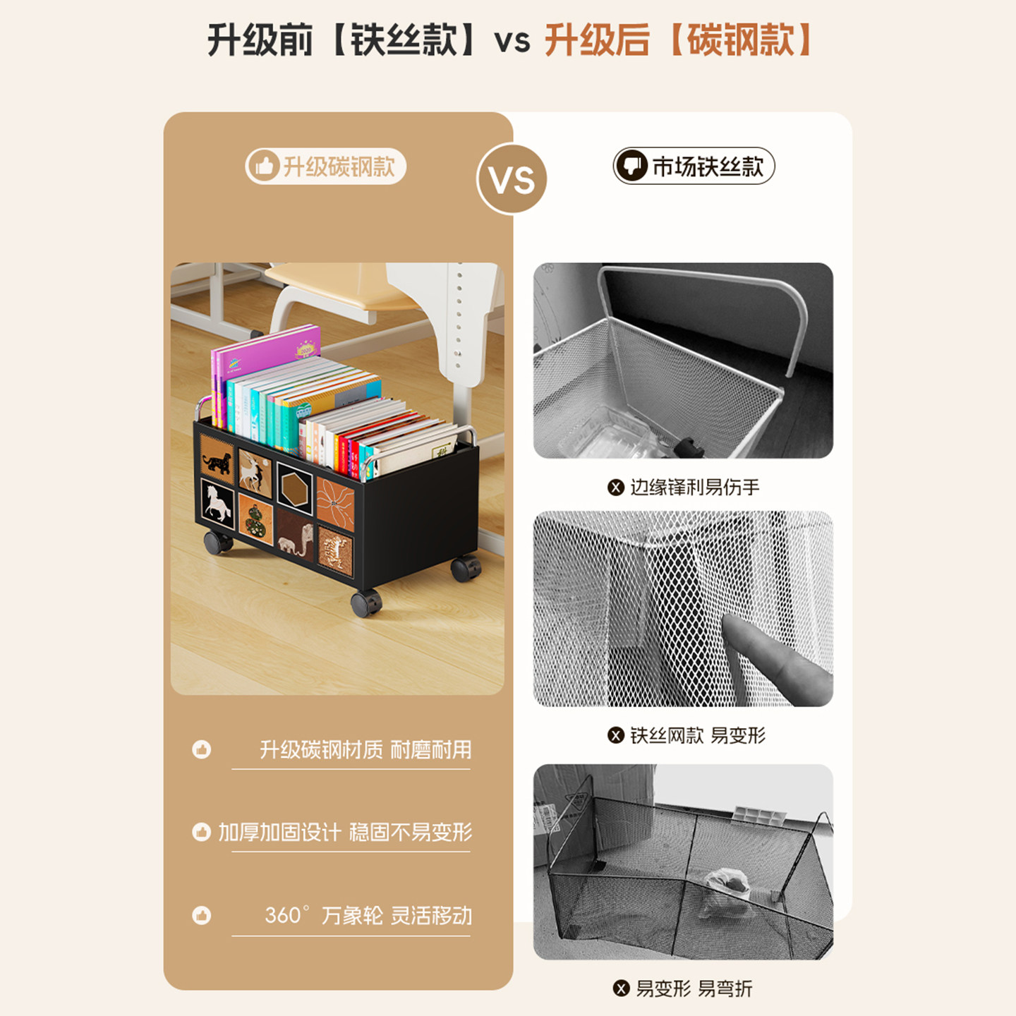 多功能书桌旁收纳置物架可移动带轮学生教室书本收纳神器桌边书架