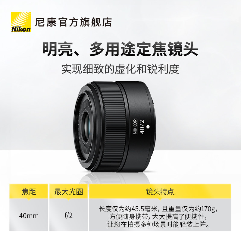 【全国国补5%】Nikon/尼康Z40mm f/2 微单相机大光圈镜头轻便人像
