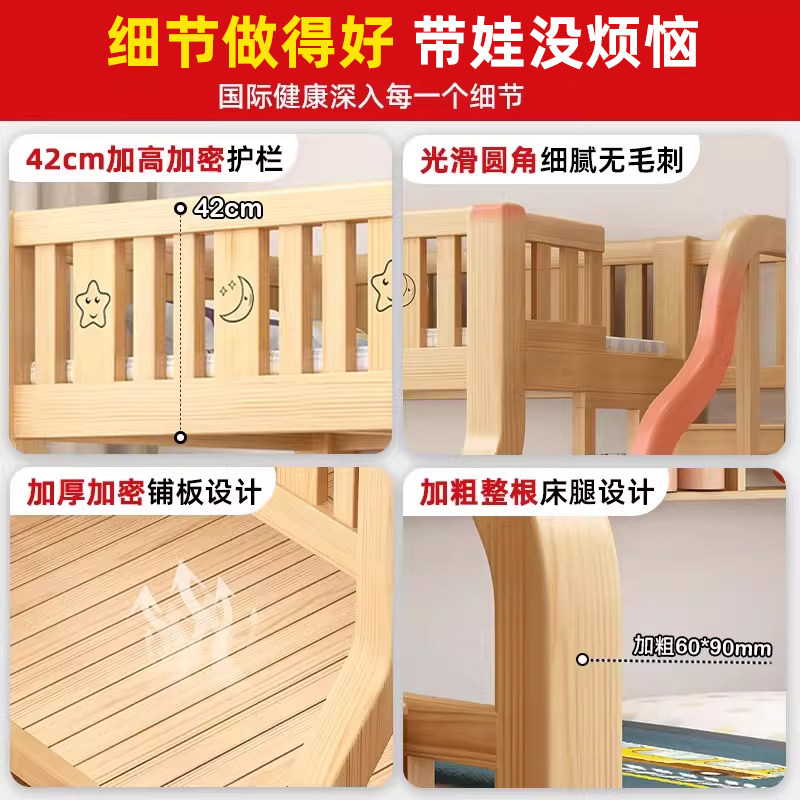 上下床双层床多功能高低床子母床两层全实木儿童床上下铺木床大人