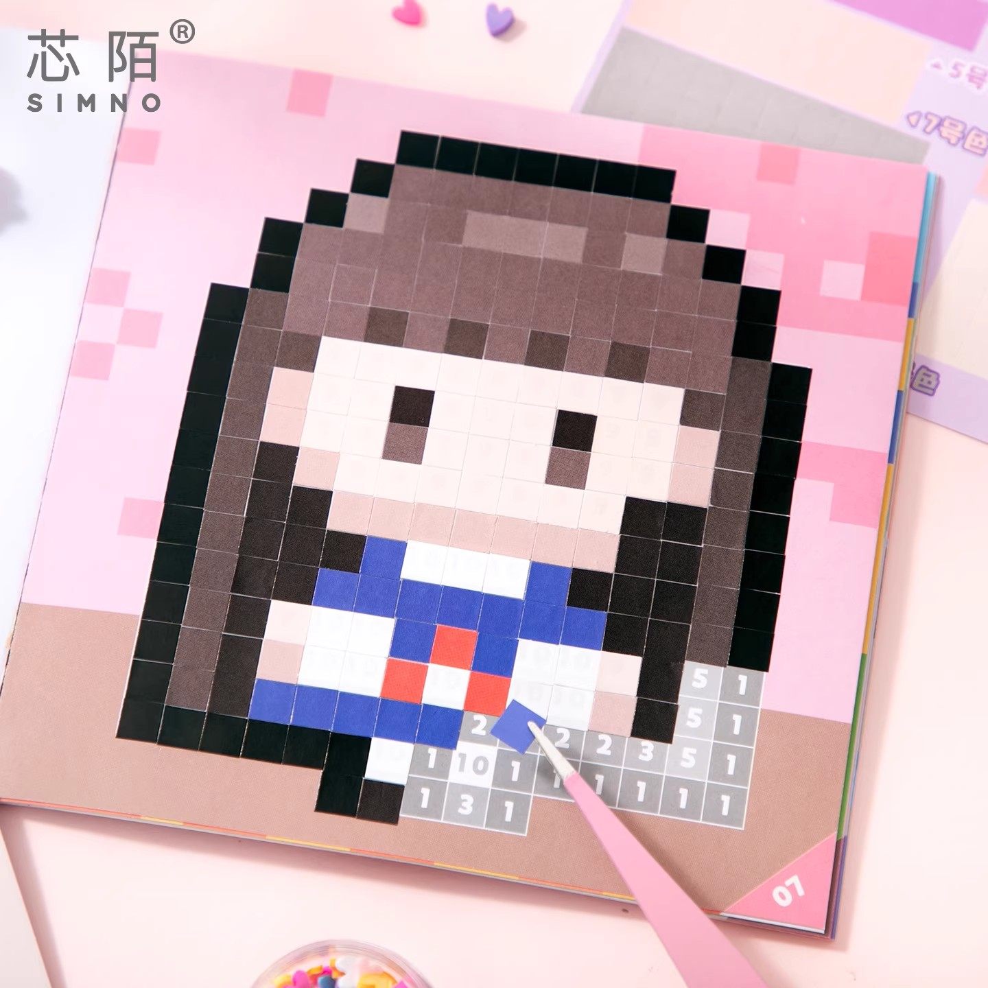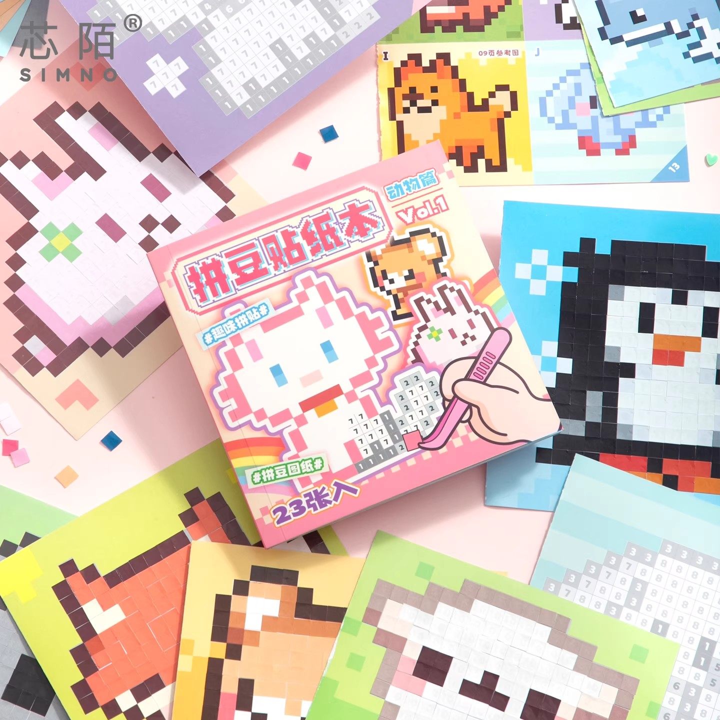 2025新款像素拼豆贴纸本迷你高颜值卡通创意diy手工马赛克咕卡贴纸豆豆本益智玩具儿童女孩手帐贴纸素材贴画