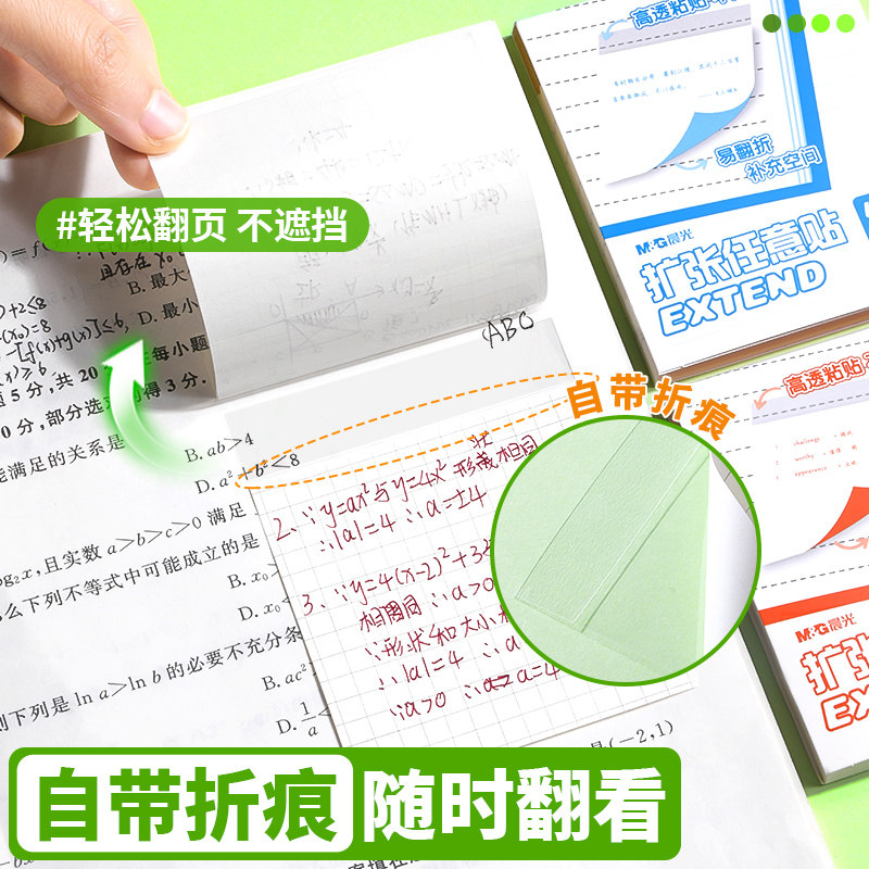 任意扩张贴便利贴不遮挡文字透明可折叠考研小学生用可撕有粘性便签贴纸初高中生记笔记贴订正错题办公便利贴