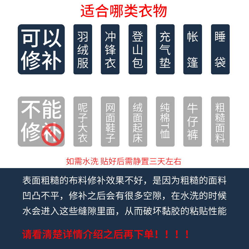 羽绒服补丁贴自粘无痕衣服破洞布贴修复贴布修补补贴可水洗黑免缝