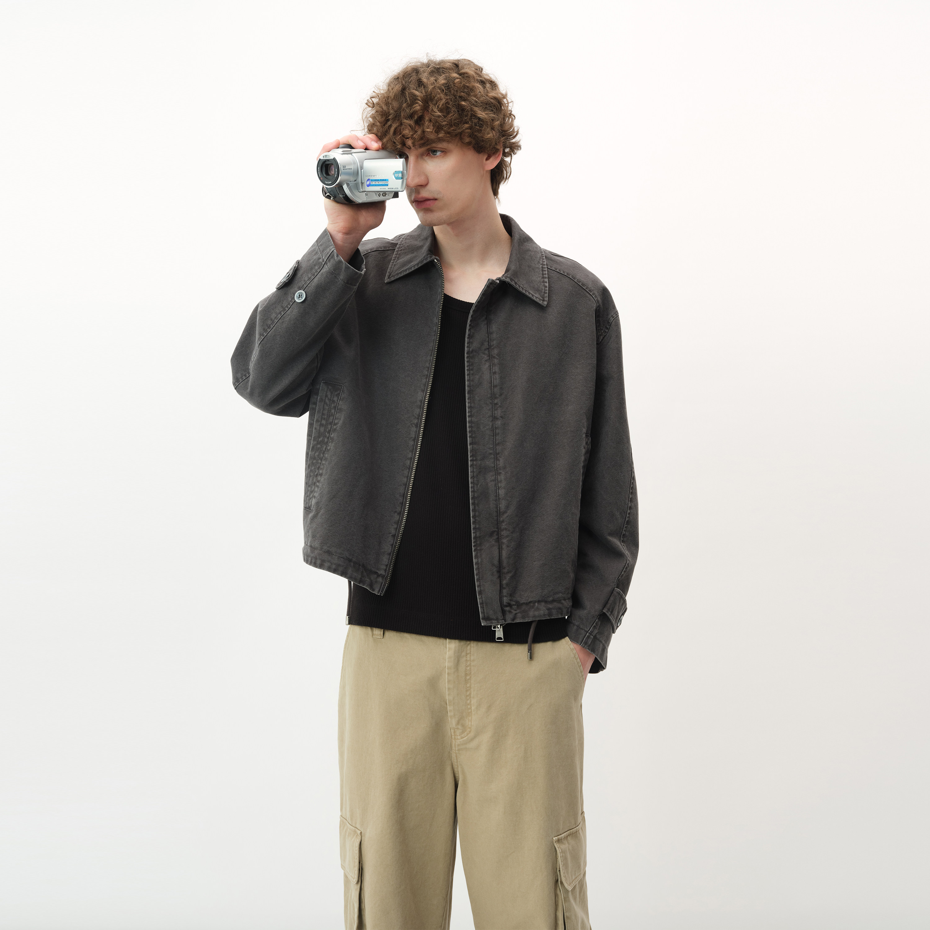 DUPU杜朴 重磅复古翻领洗水牛仔外套 纯棉经典简约牛仔夹克