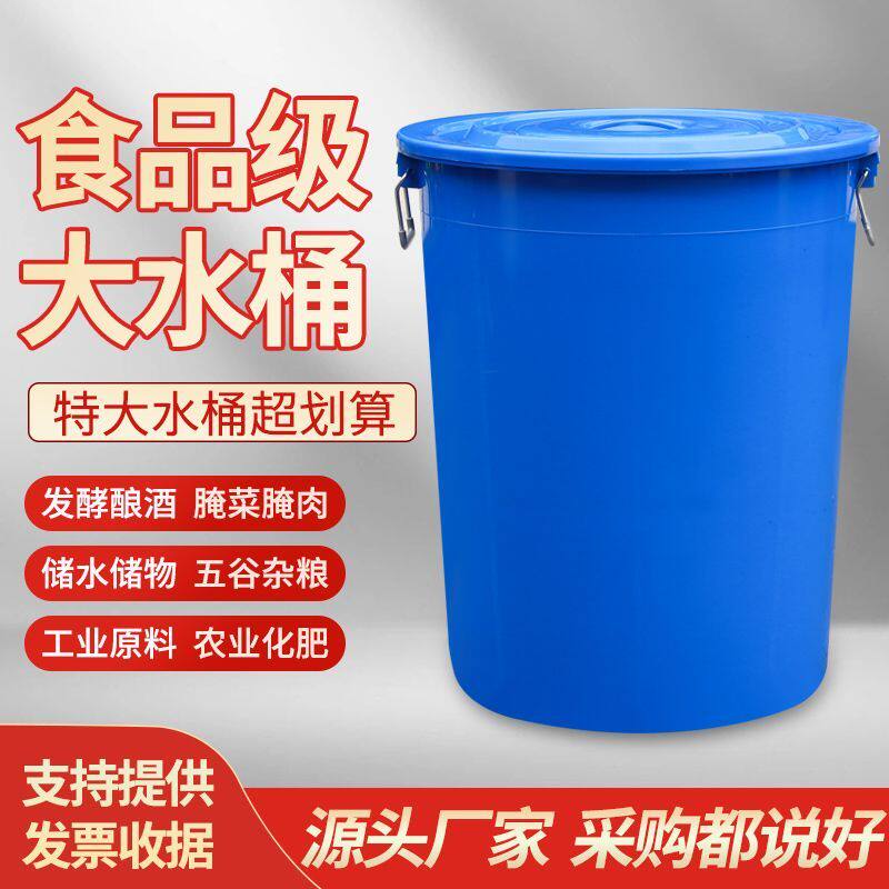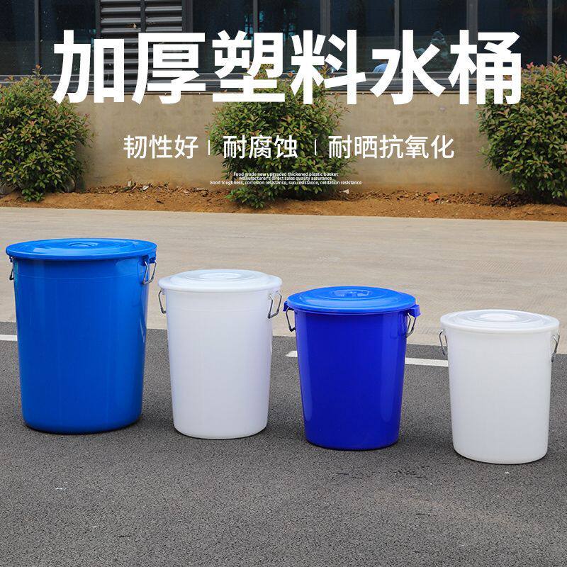 大号塑料水桶带盖圆桶圆形垃圾桶大容量加厚商用家用户外厨房储水