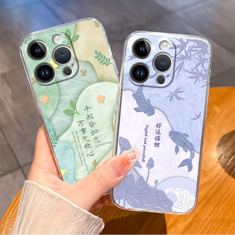 适用苹果17 16 13 14 15手机壳5s中国风iPhone12ProMax锦鲤11Pro中式XR透明XS苹果8Plus蛇年6s 7国潮8 plus软