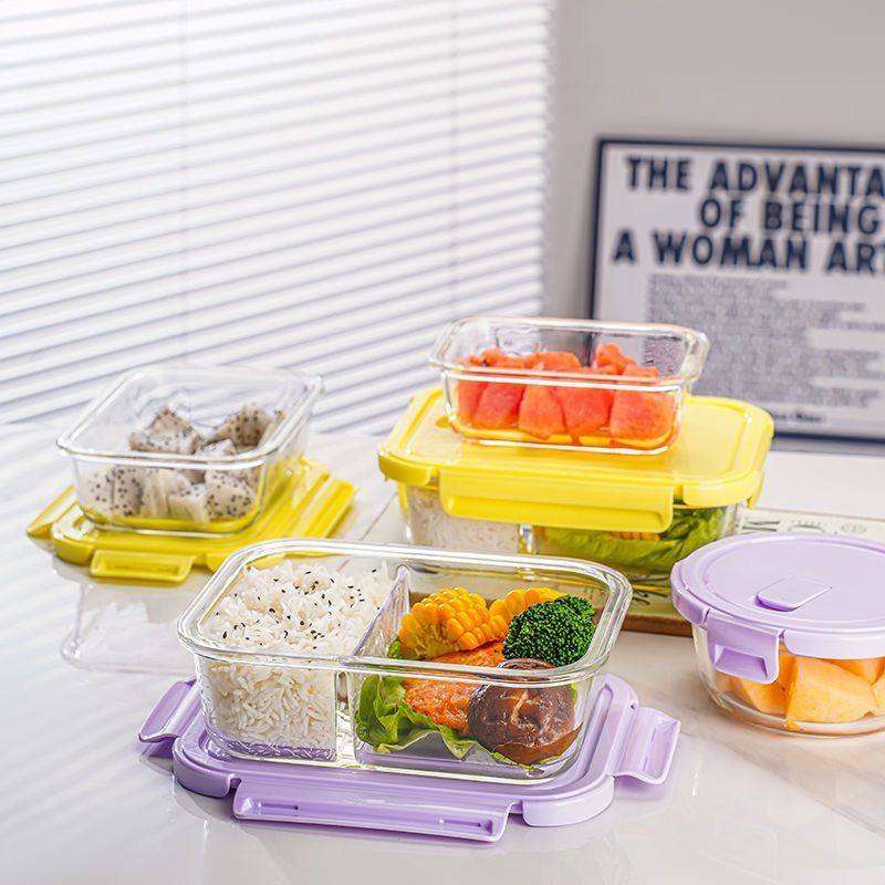 玻璃饭盒微波炉可加热饭盒带盖上班族玻璃保鲜盒大容量水果便当盒