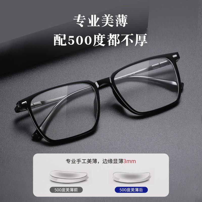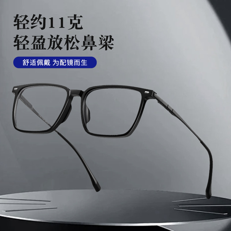 超轻钛架理工男黑框眼镜近视可配有度数大脸显瘦方框男款眼睛镜架