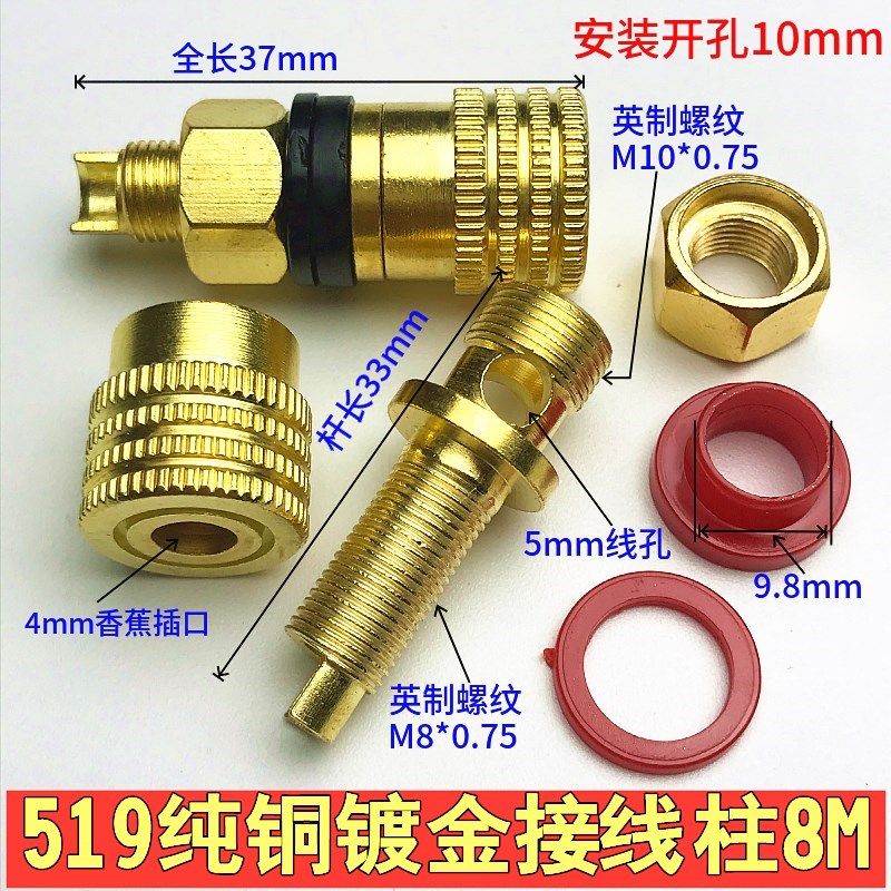 519全铜纯铜镀金接线柱红黑色音箱音响M8开孔8mm电焊机逆变器端子