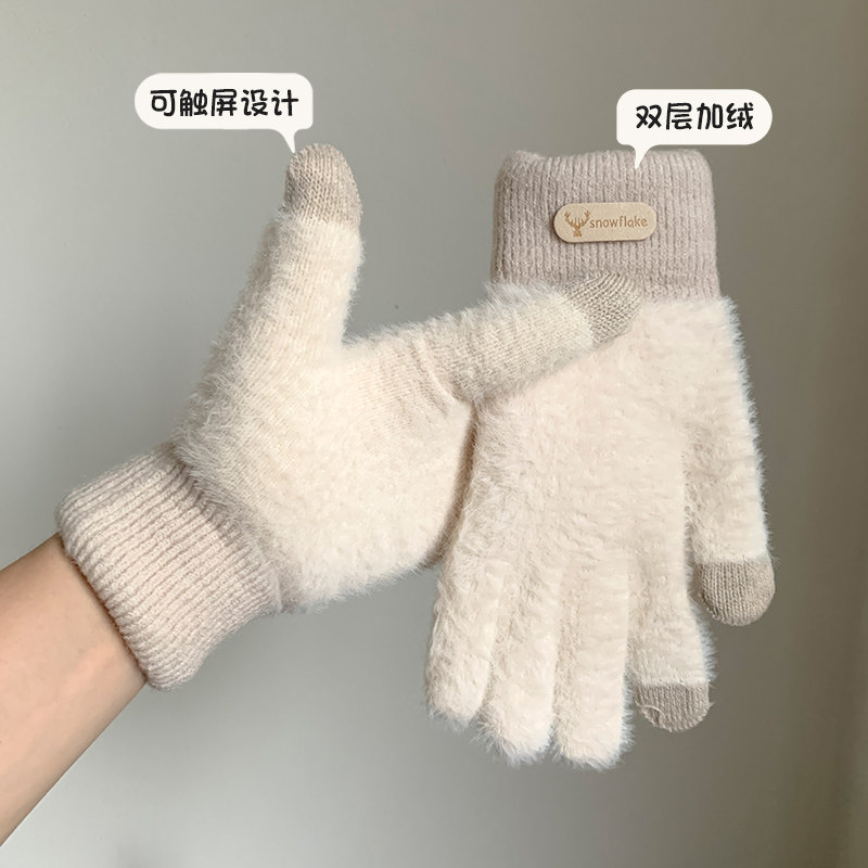 可触屏手套冬季加绒加厚保暖防风防寒毛线针织双层分指户外骑行