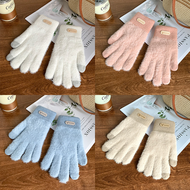 miniso名创优品冬季手套女保暖加绒针织触屏手套学生通勤户外防冻