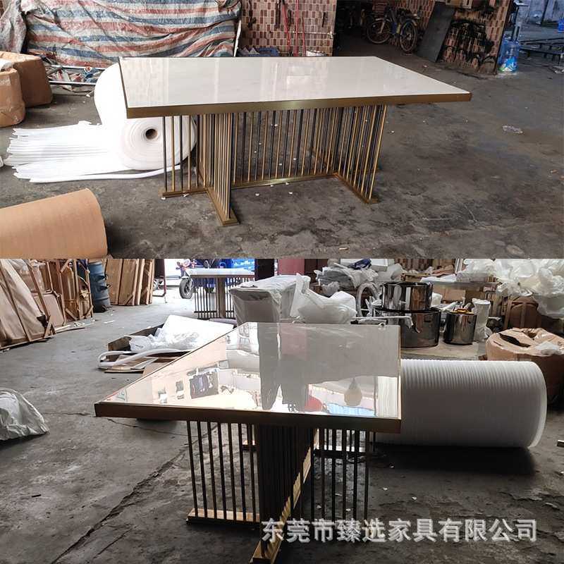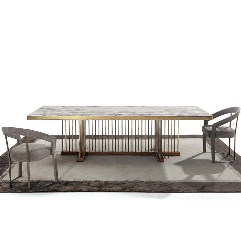 轻奢意式LONGHI椅组合现代简约不锈钢长方形大理石饭桌家用餐桌