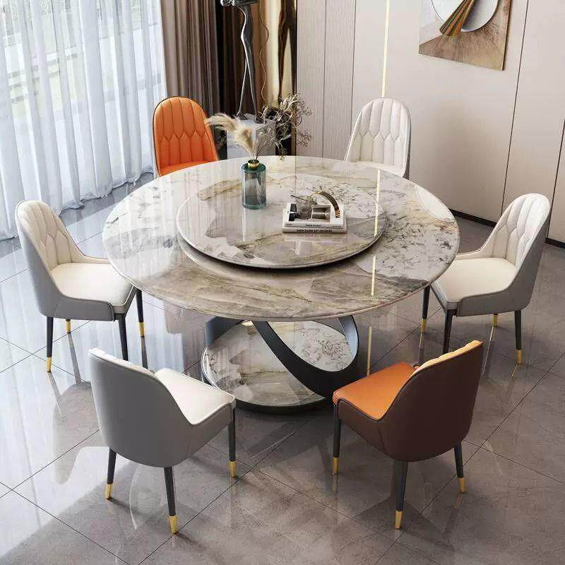 轻奢超晶石餐桌椅组合现代简约微晶石饭桌子家用中小户型专用圆桌