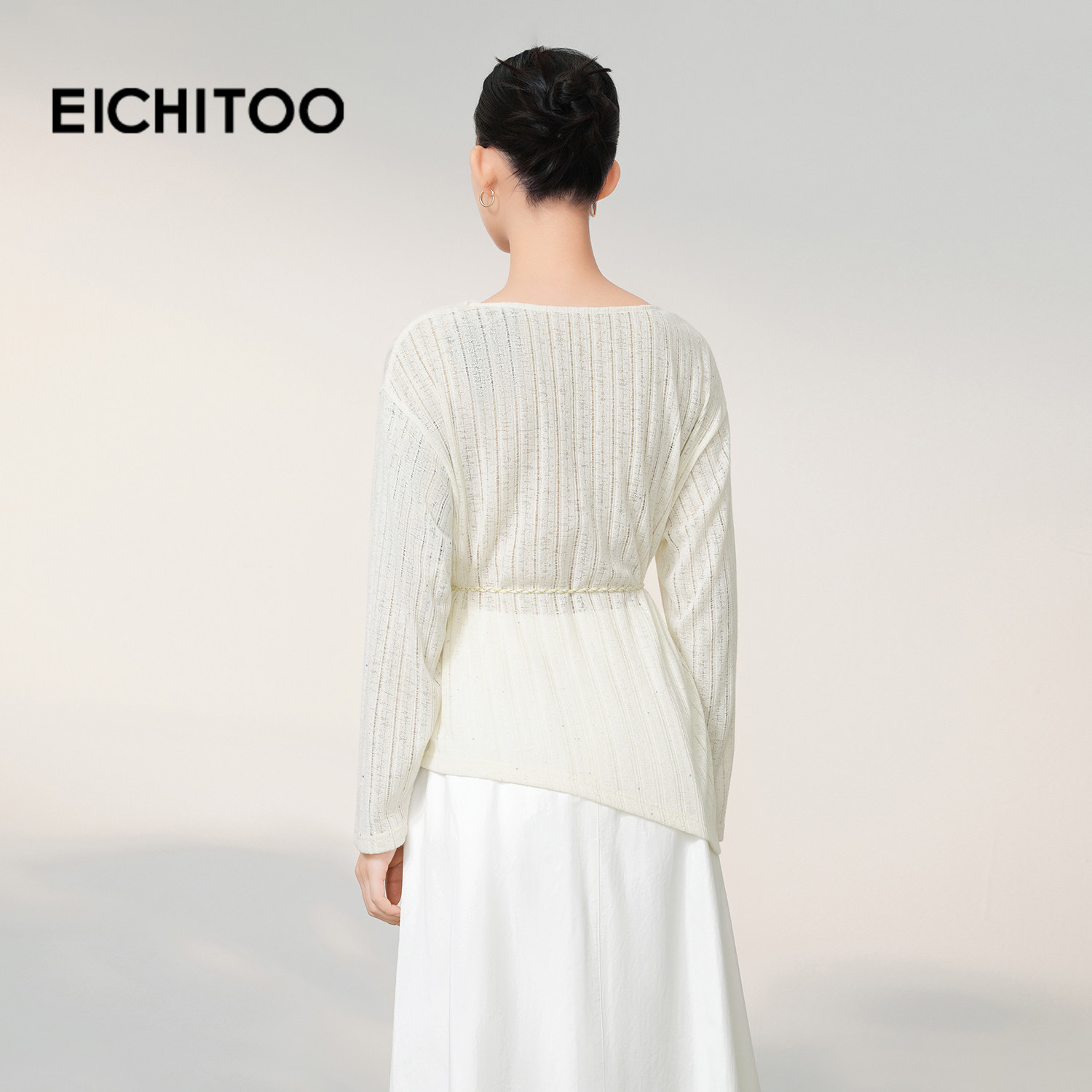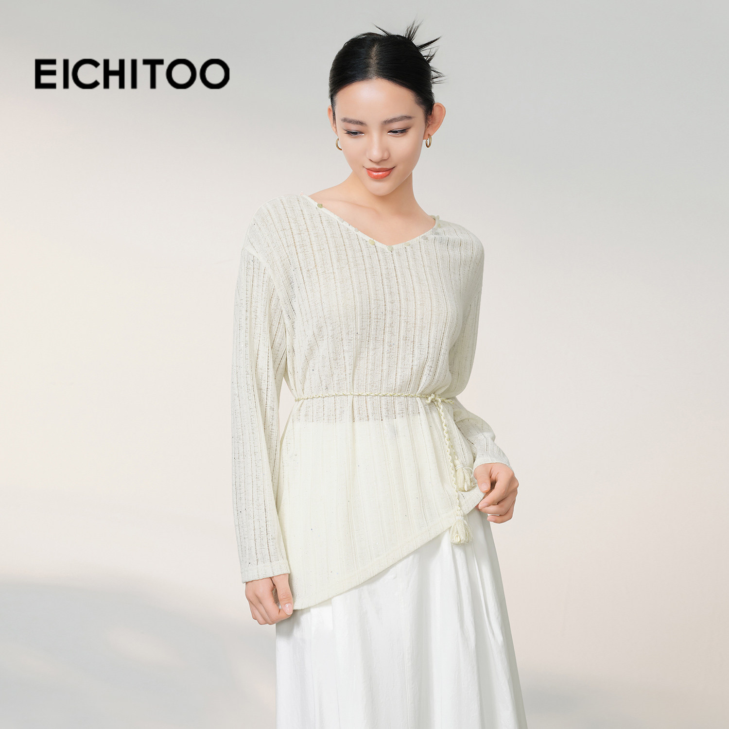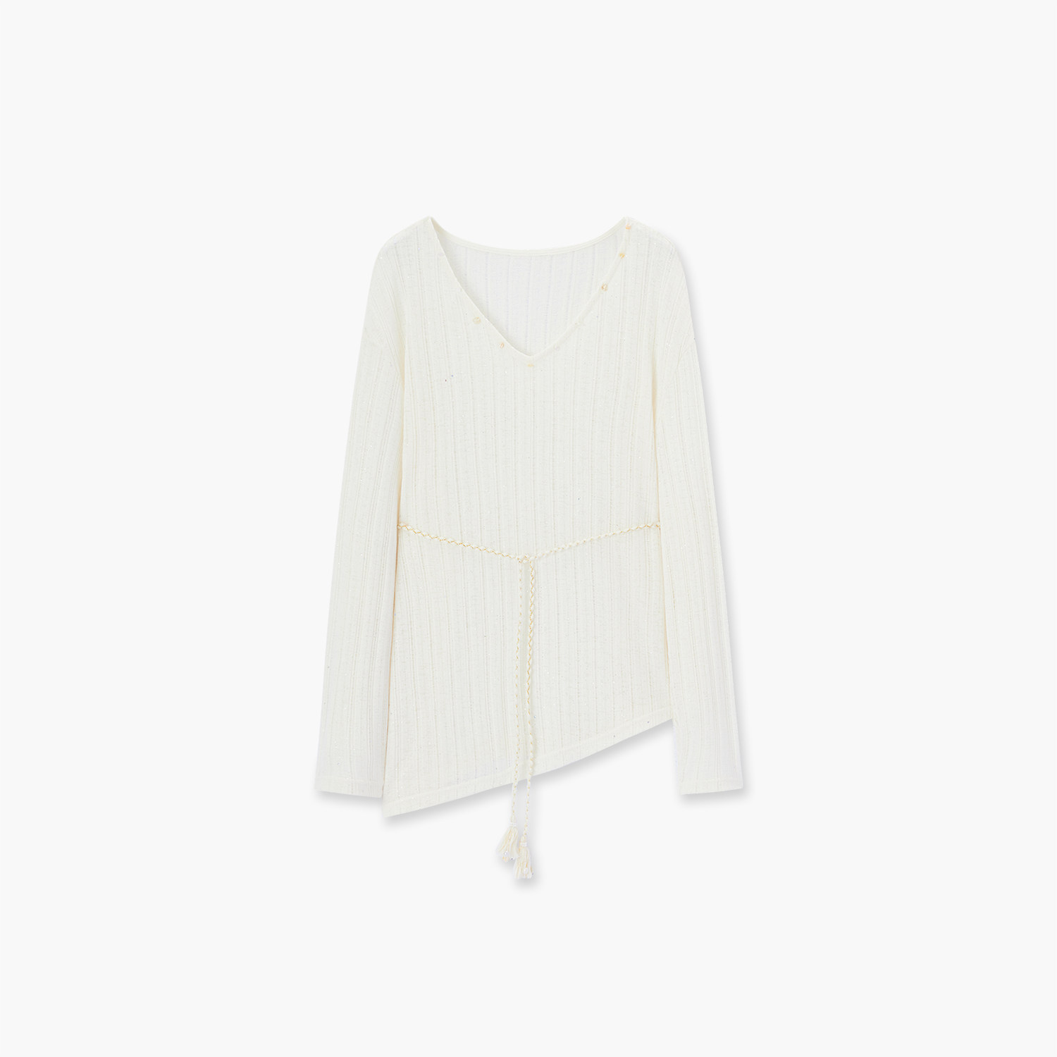 爱居兔法式镂空V领针织衫女2026年春季新款松弛感系带不规则上衣