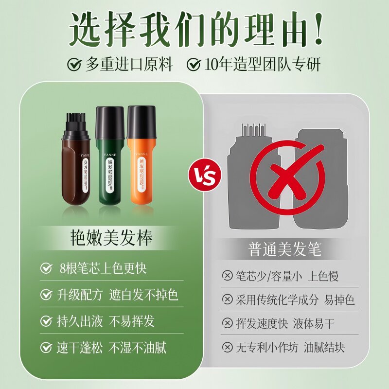 遮盖白发神器美发棒快速补发笔一次性纯植物补发笔棒不掉色补发根