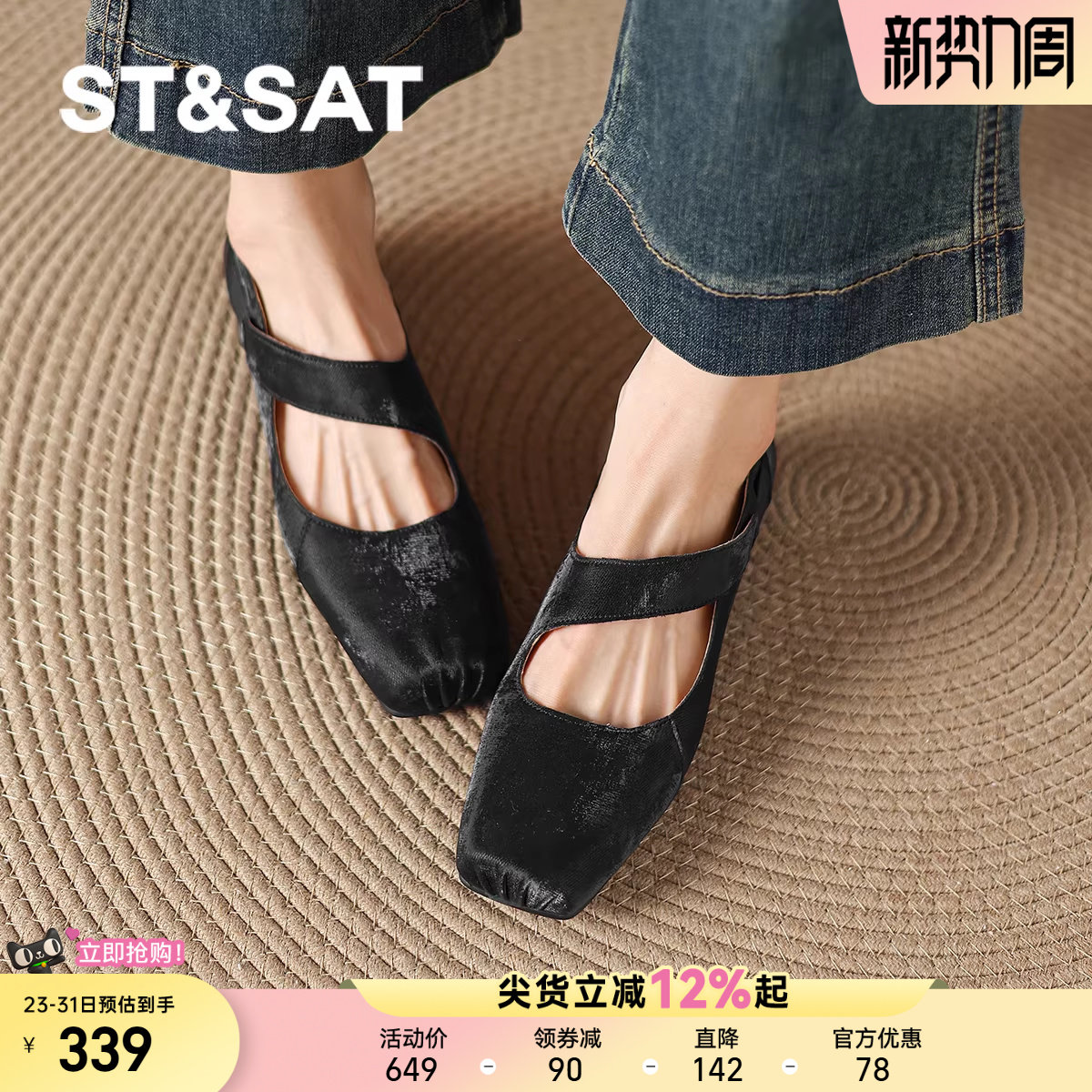 星期六玛丽珍鞋小单鞋女士女款芭蕾黑色粗跟豆豆女鞋子配裙子春季