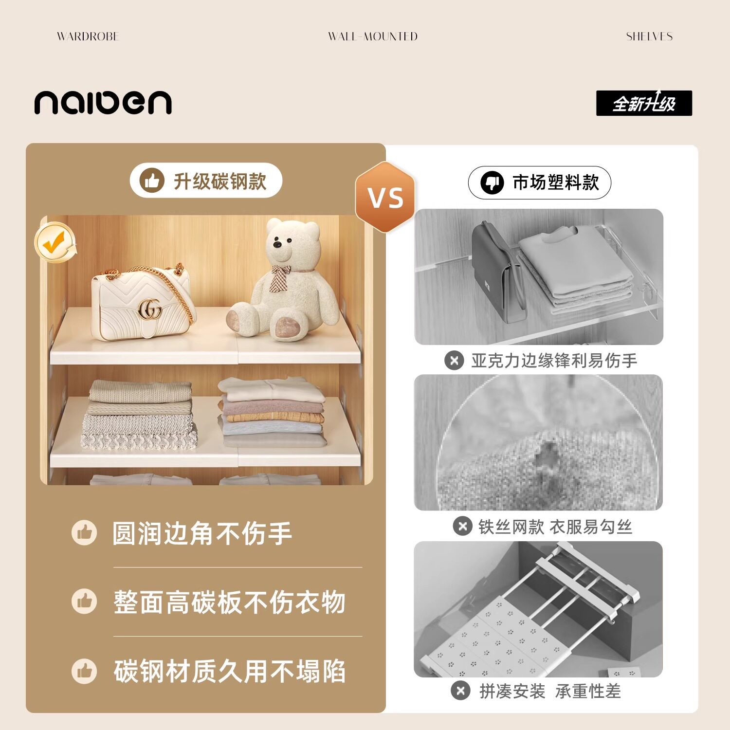亚克力免打孔衣柜隔板置物架分层板鞋柜子分隔层板橱柜内收纳定制