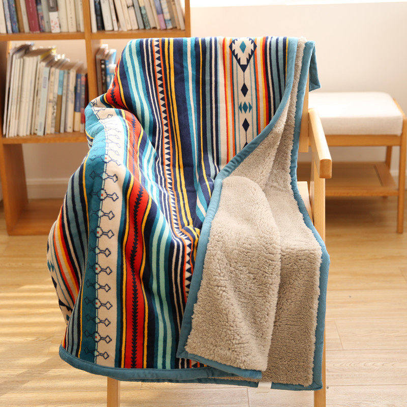 出口北欧双层毛毯加厚保暖冬季羊羔绒珊瑚绒毯子沙发小号午睡毯