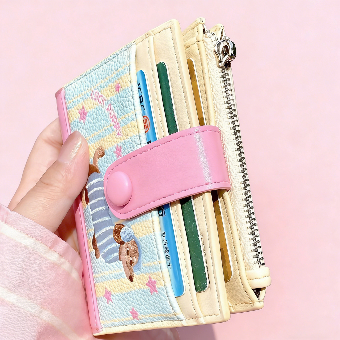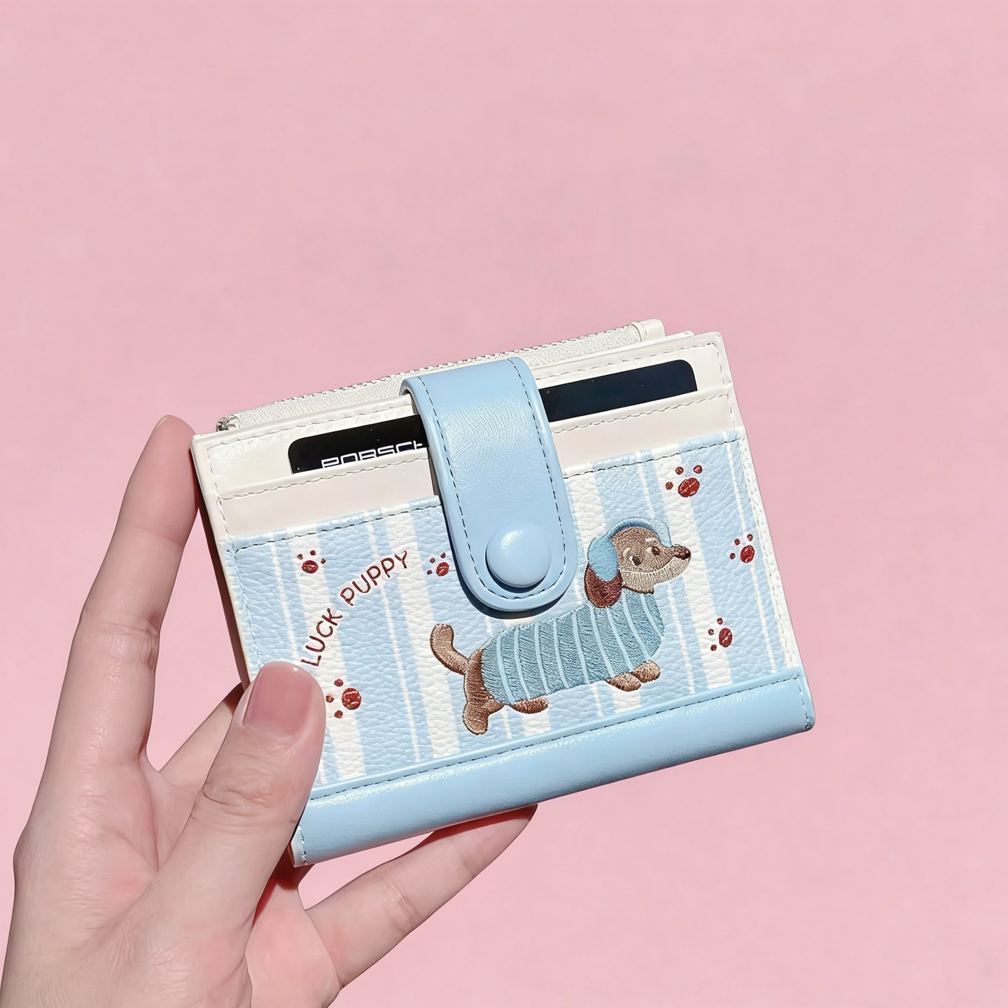 2026新款刺绣小狗卡包零钱包女生可爱轻薄小巧证件收纳一体钱包