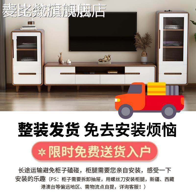 麦比梵茶几电视柜组合客厅家用2025新款新中式现代简约实木边框一体靠墙床笠拉车