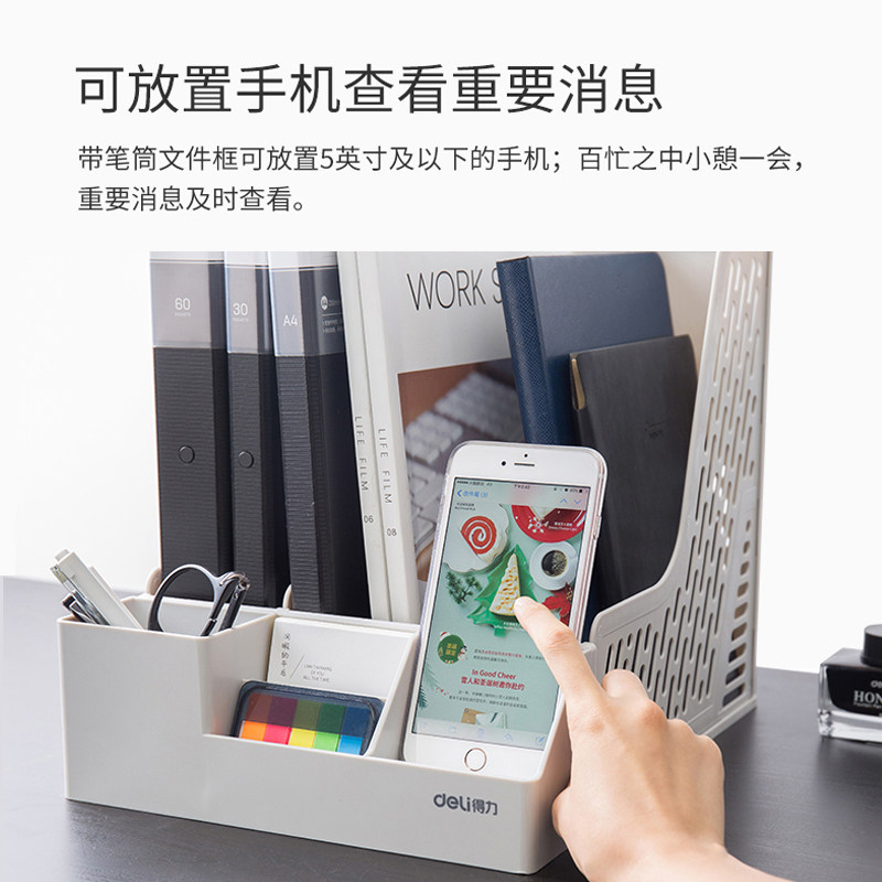 得力文件框文件收纳架加厚文件放置架黑色简易立式书立文件架书架桌面办公文件收纳架文件盒桌上资料架