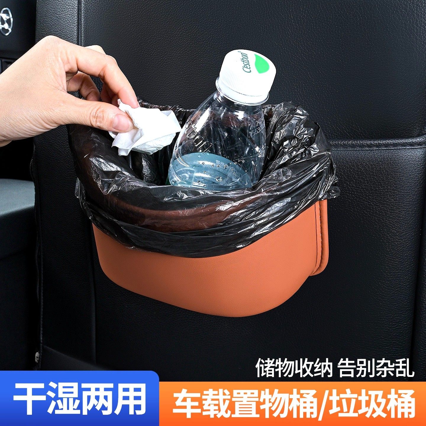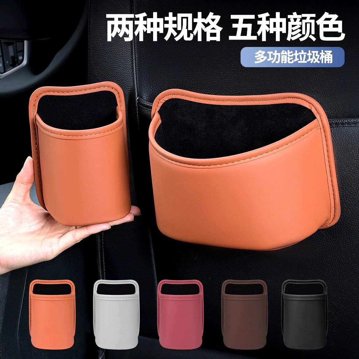 车载垃圾桶车用雨伞收纳座椅后排挂式杂物盒皮革汽车内装饰置物盒