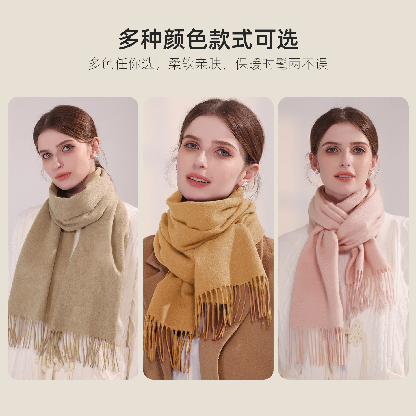 秋冬新款羊毛围巾女冬季百搭红色保暖围脖新年礼物礼盒装服饰披肩