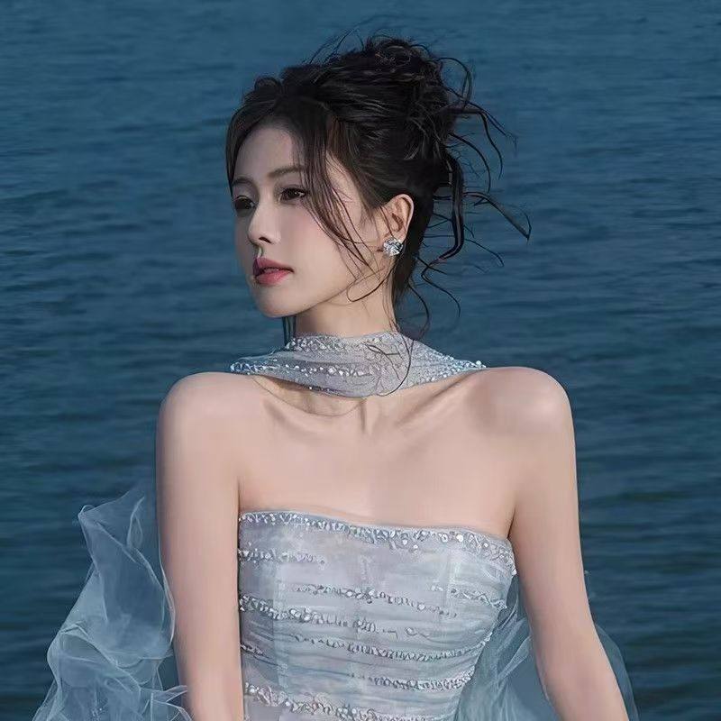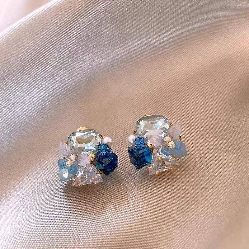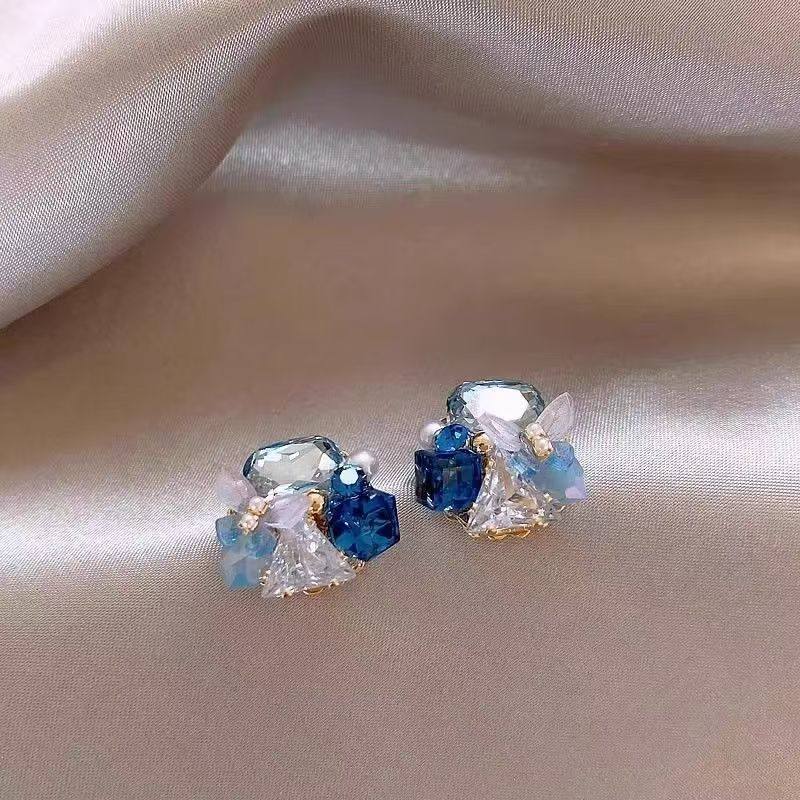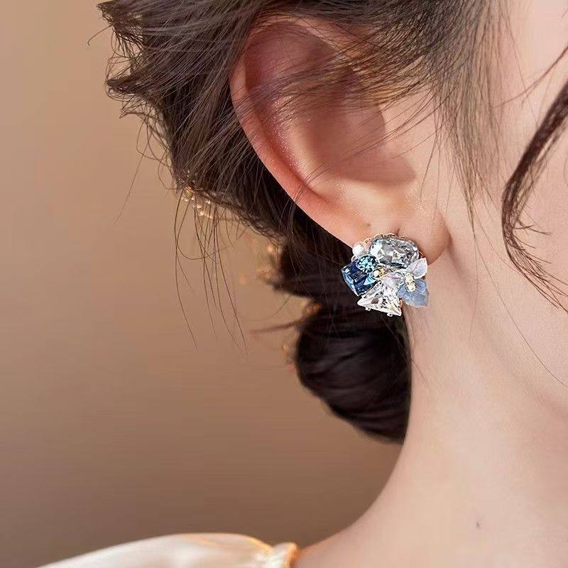 蓝色耳钉女方圆脸2025新款爆款轻奢高级感气质大气耳环巨好看耳饰