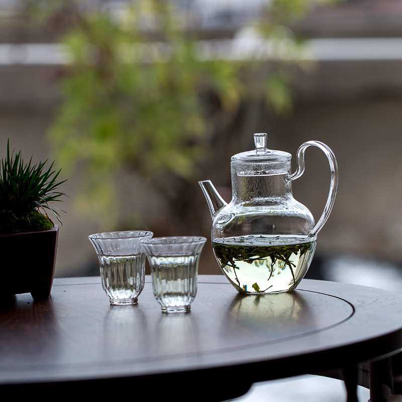 仿宋玻璃绿茶壶家用耐热冲茶器花茶壶大号高硼硅泡茶单壶花草茶具