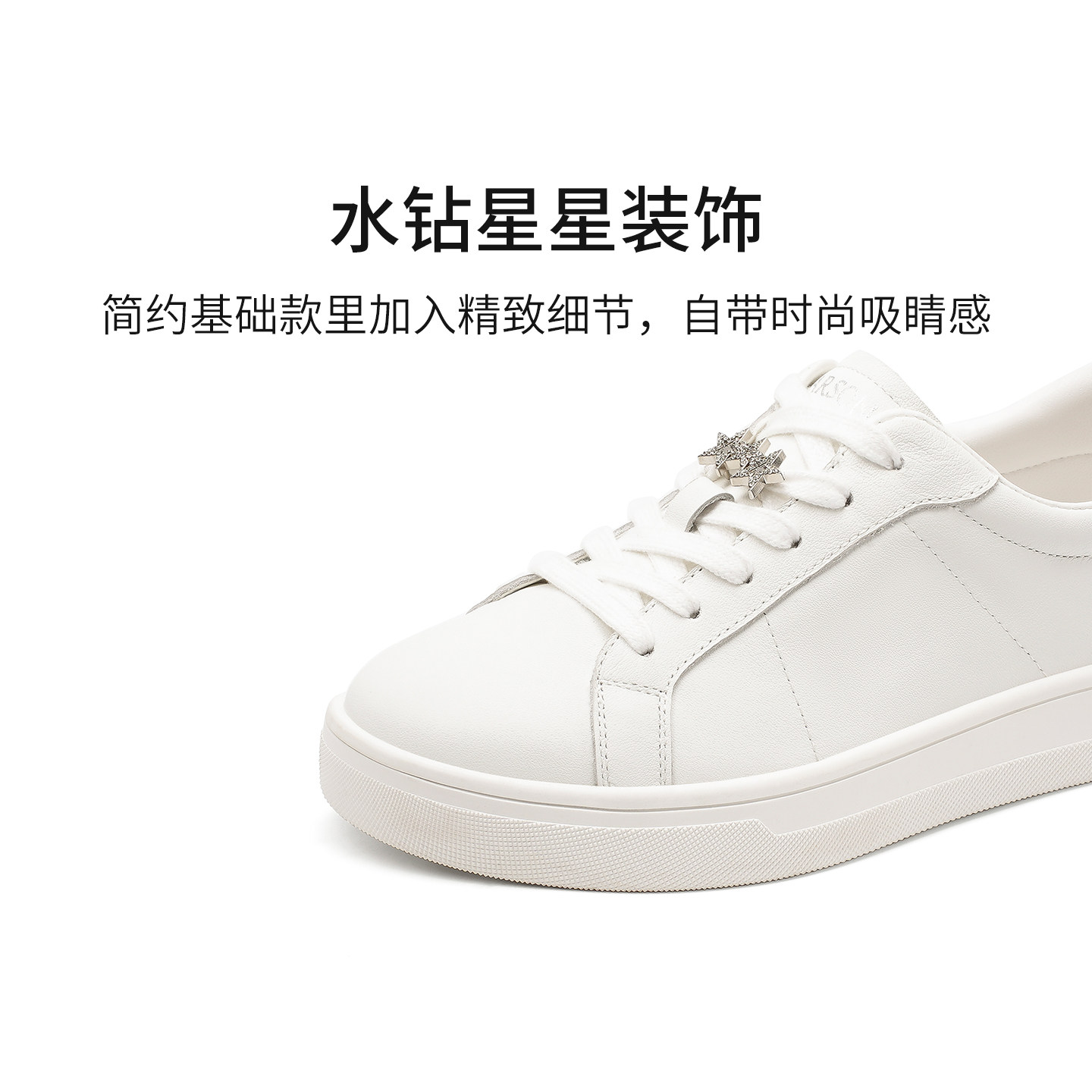 哈森经典真皮小白鞋水钻星星休闲板鞋时尚女鞋2026新款HWCS260110