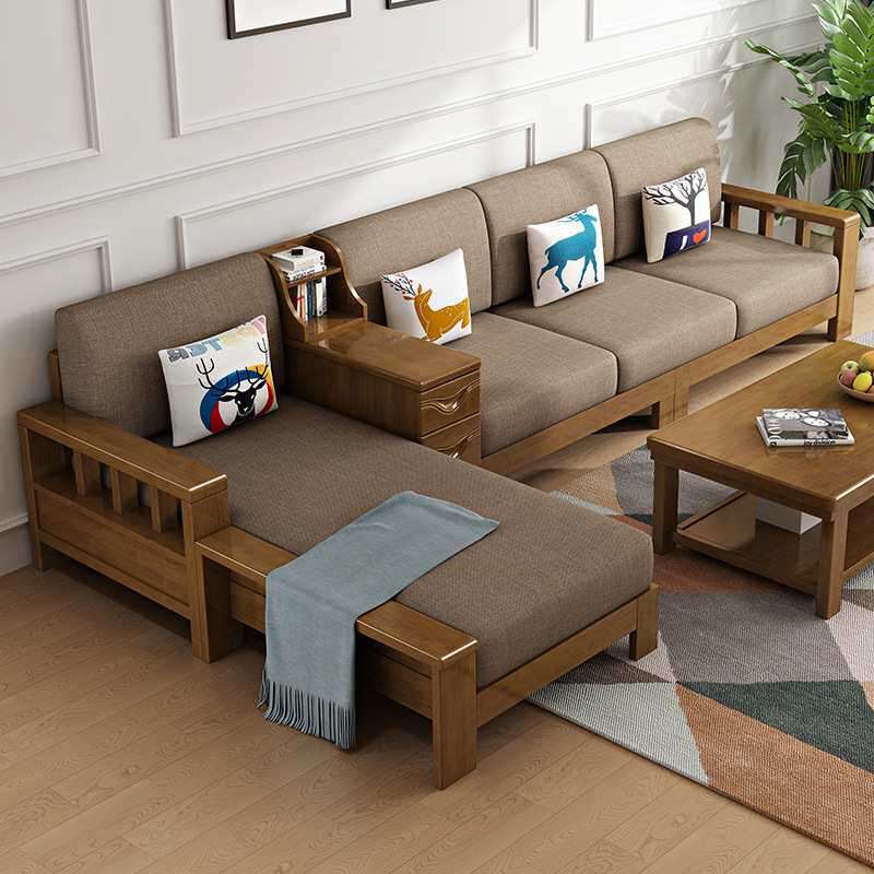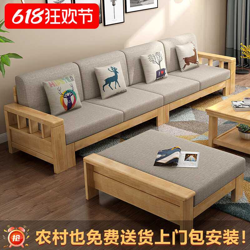 中式实木沙发组合现代布艺三人位沙发床大小户型客厅家用储物沙发