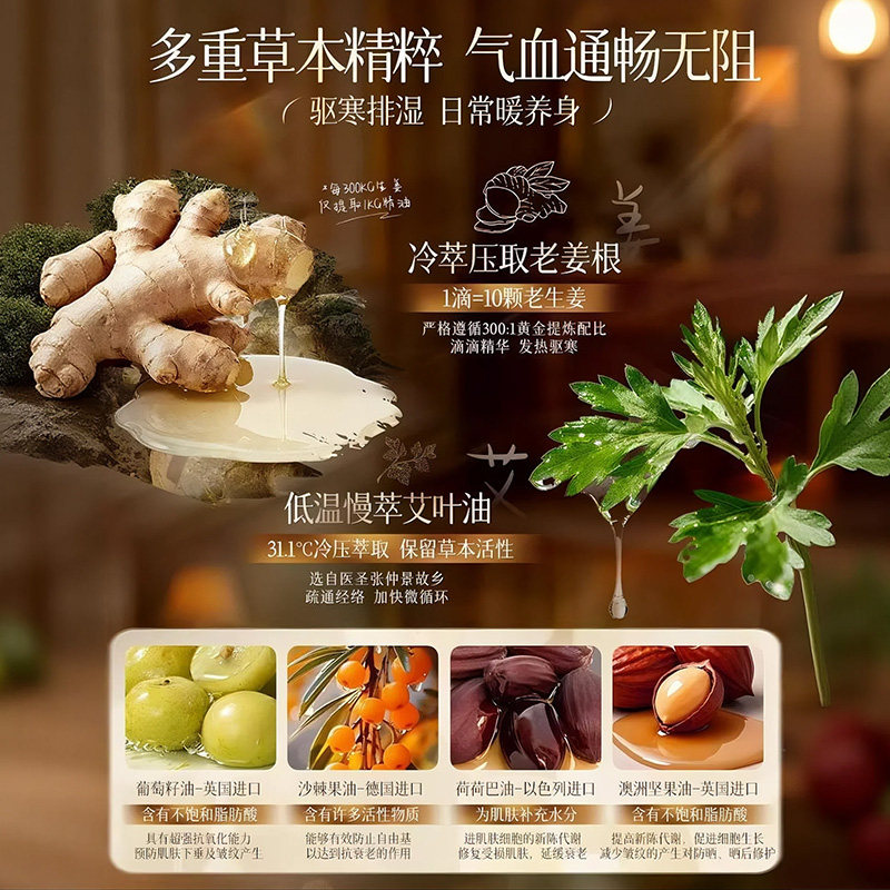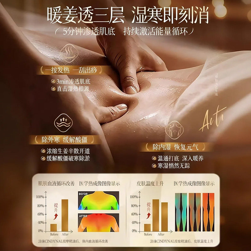 生姜艾草按摩精油全身体通经络发热排毒刮痧推拿免洗男女官方正品