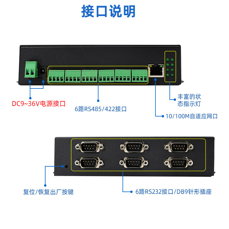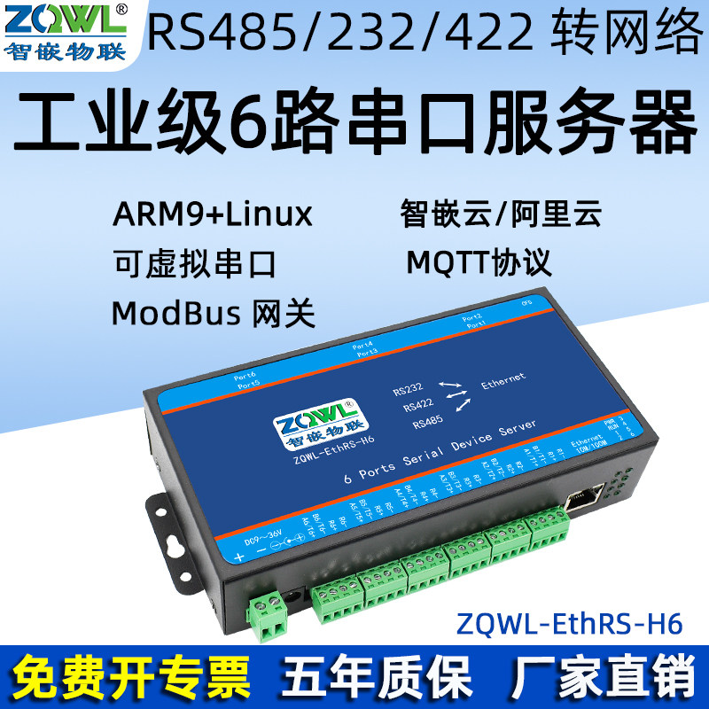 【智嵌物联】6路RS485/232/422串口服务器转以太网模块485透传ModbusRTU/TCP网关MQTT协议智能网口通讯设备
