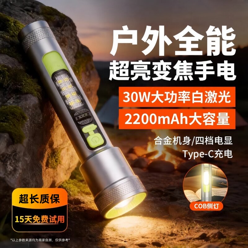 硕森超亮手电筒强光充电户外激光家用小型迷你便携耐用多功能远射
