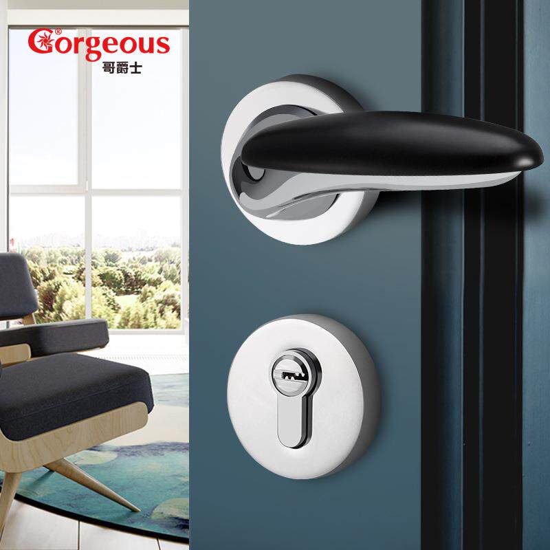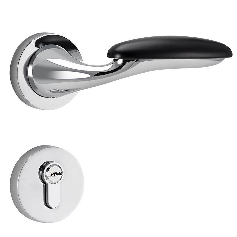 亮铬色锌合金门把手 室内卧室纯铜锁芯门锁 酒店静音门锁家具五金