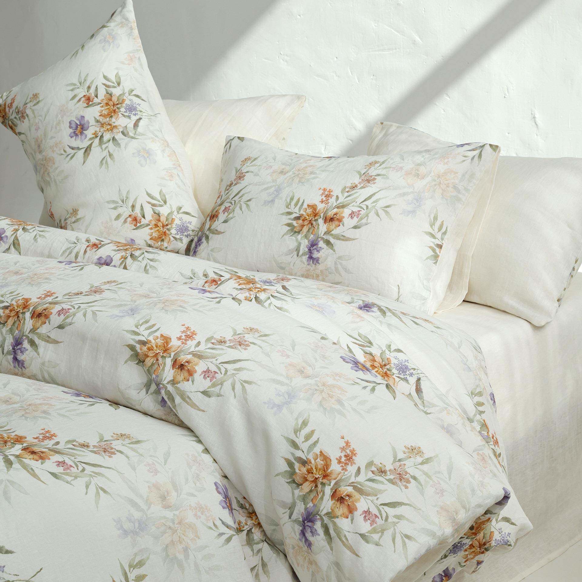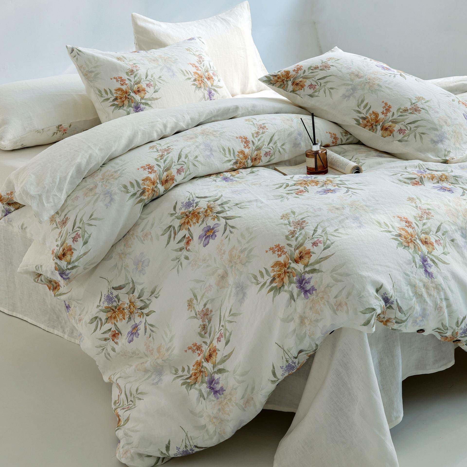 裕泰源印花亚麻四件套中国风白色床品套件高端床单被套枕套