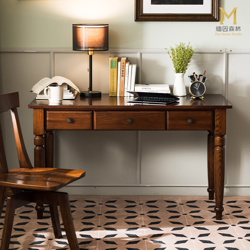 实木书桌书房美式办公工作台原木写字台全实木白蜡木复古政府补贴