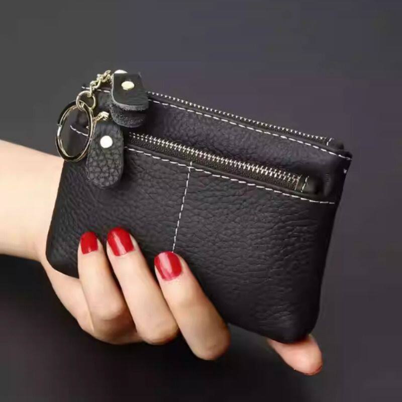 稻草人钱包女真皮黑色钱夹小巧小众高级感零钱包牛皮精致皮夹卡包