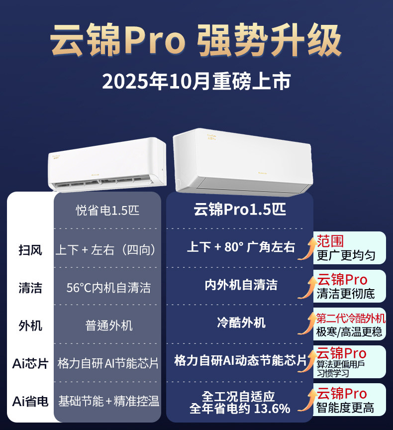格力空调官方1.5匹云锦pro/悦省电升级款一级能效正品政府补贴
