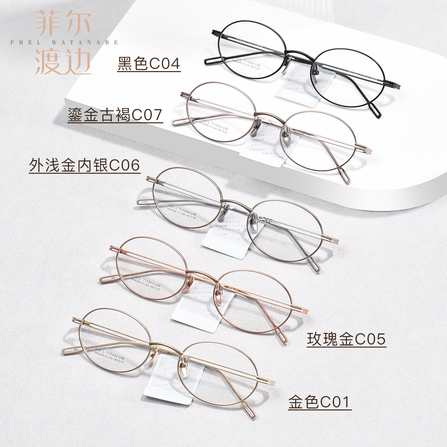 菲尔渡边日本进口钛材老钱风全框书呆子韩女素颜椭圆眼镜架08298