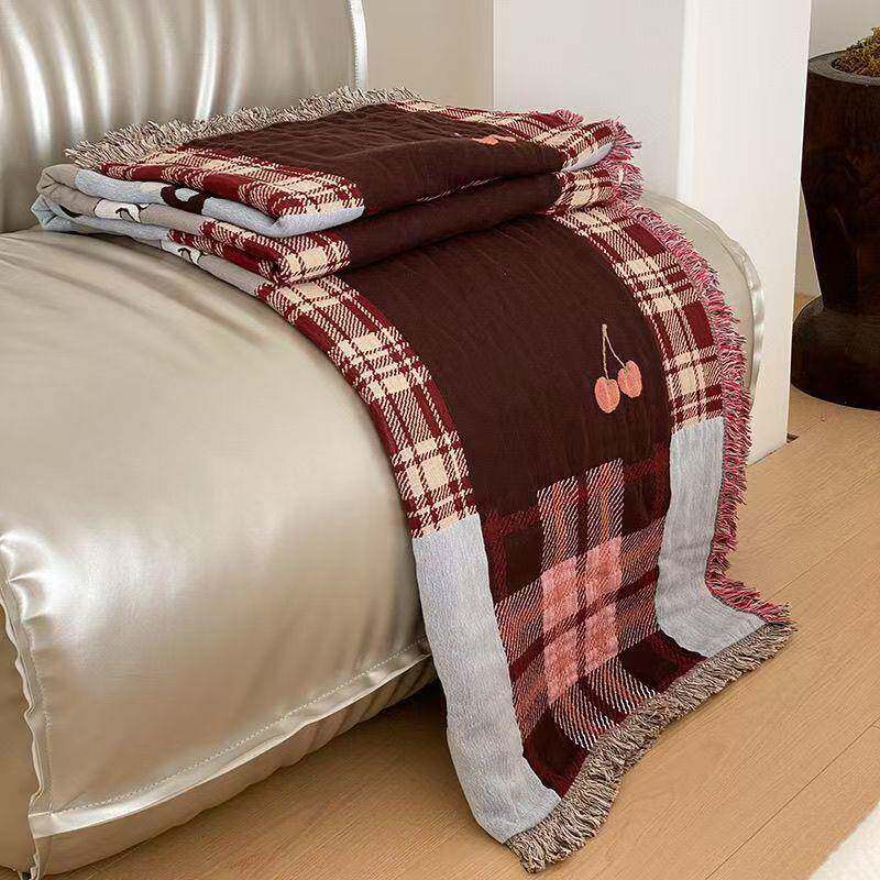 四季款文艺范流苏全棉纱布披肩毯休闲毯毛巾被一毯多用浴巾浴裙