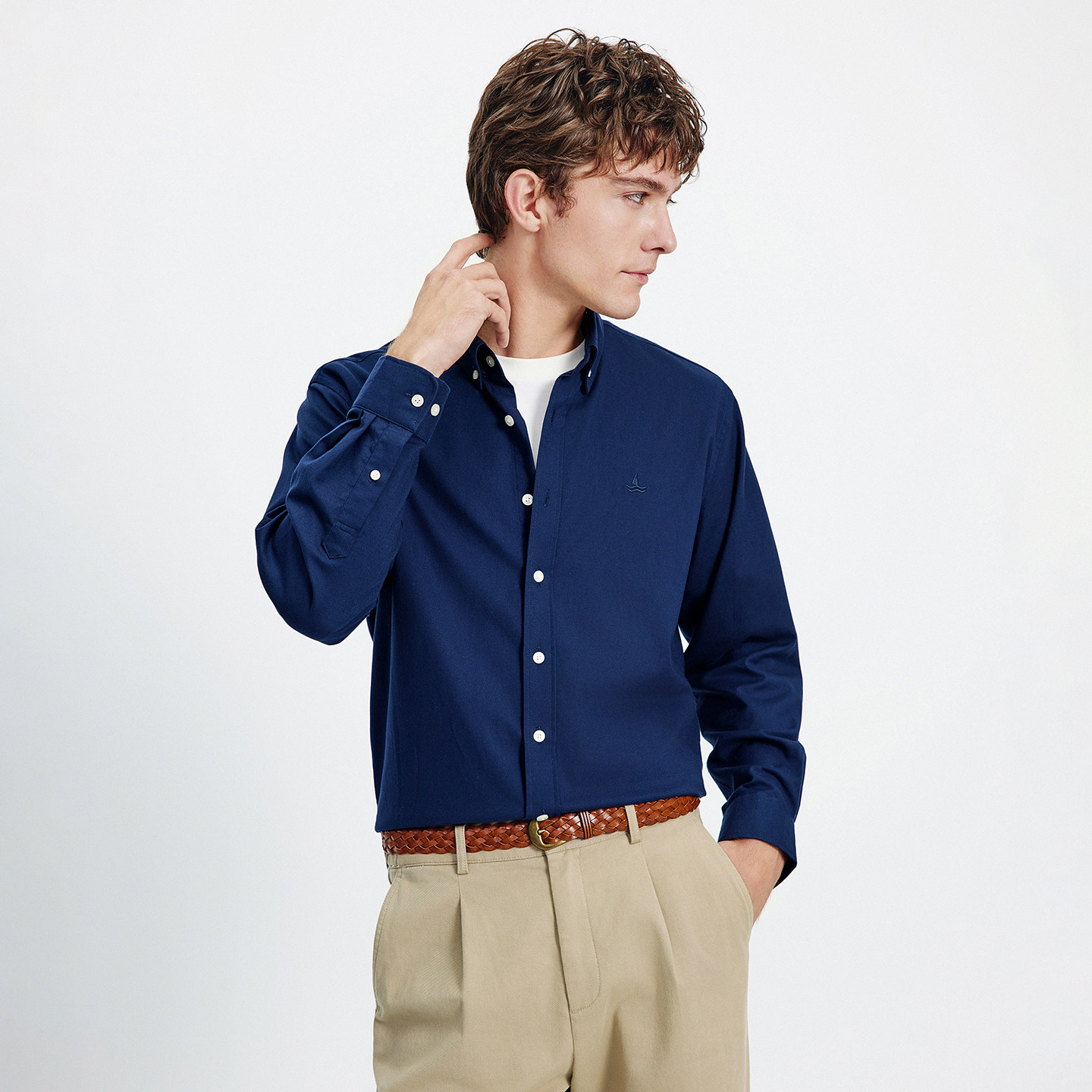 Navigare意大利小帆船纯色长袖衬衫男2026春季新款抗菌休闲棉衬衣
