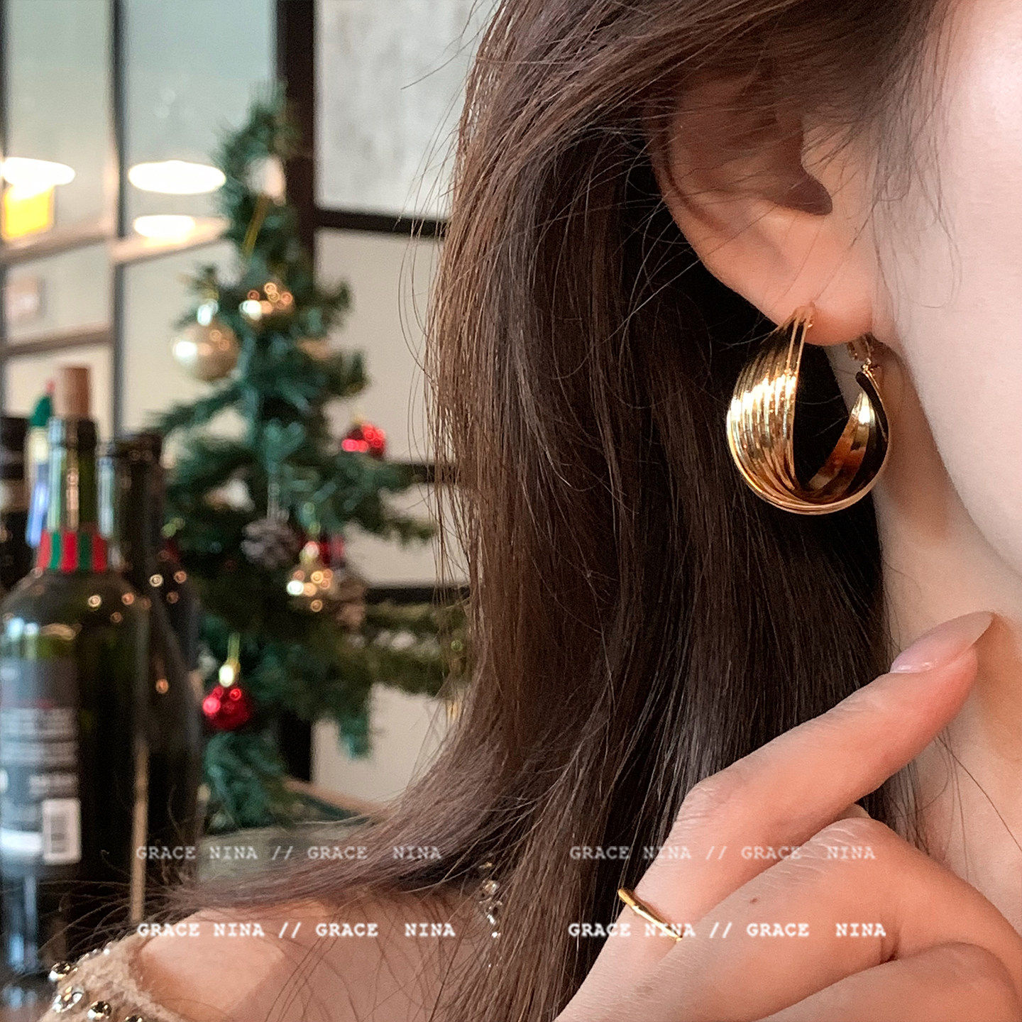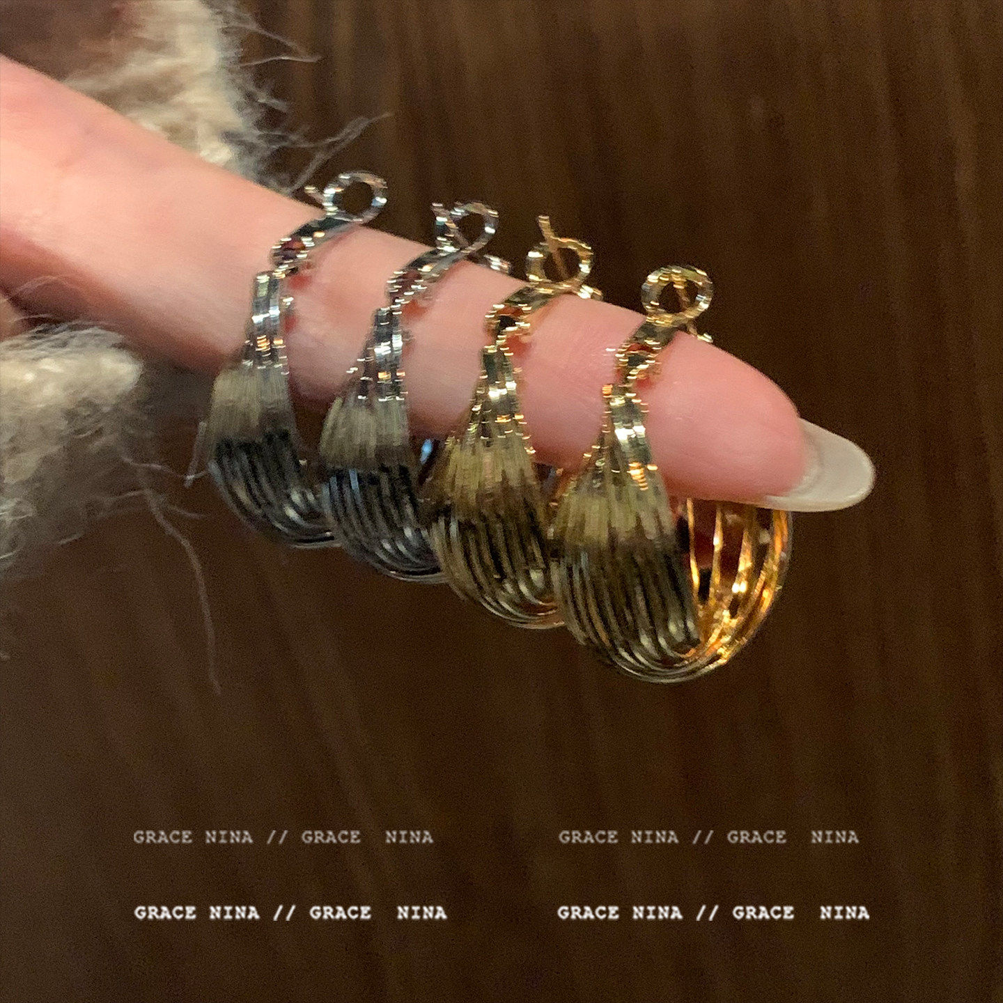 金色拉丝几何耳环2025新款爆款高级感轻奢小众气质耳扣女秋冬耳饰
