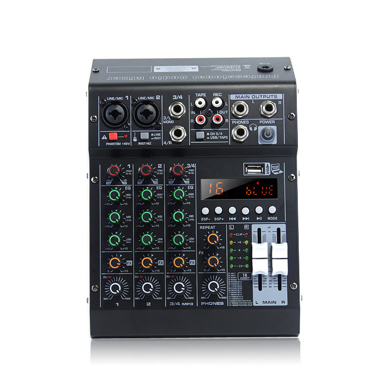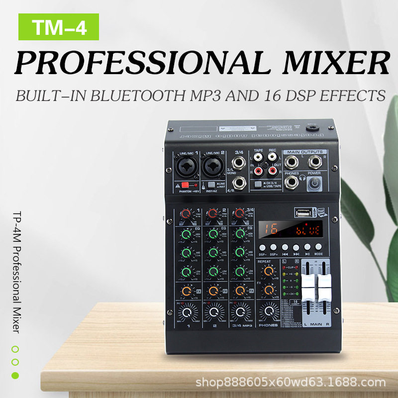 跨境源头HM-4M专业4路调音台声卡内置DSP效果48V会议舞台演出通用