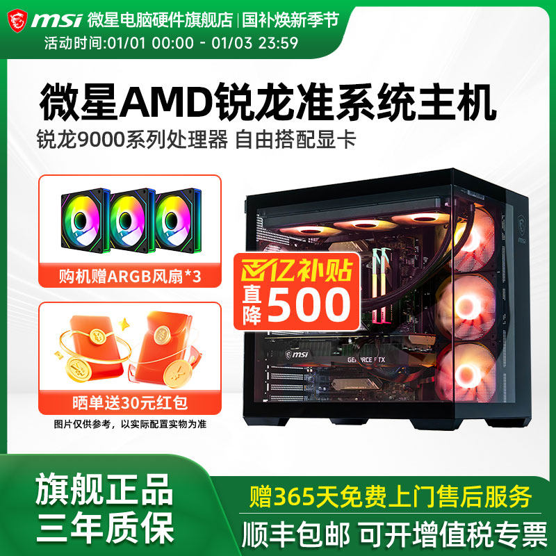 微星AMD准系统主机7500F/9600X/9700X/7800X3D/9800X3D核显无卡台式电脑整机高配游戏电竞海景房DIY组装机