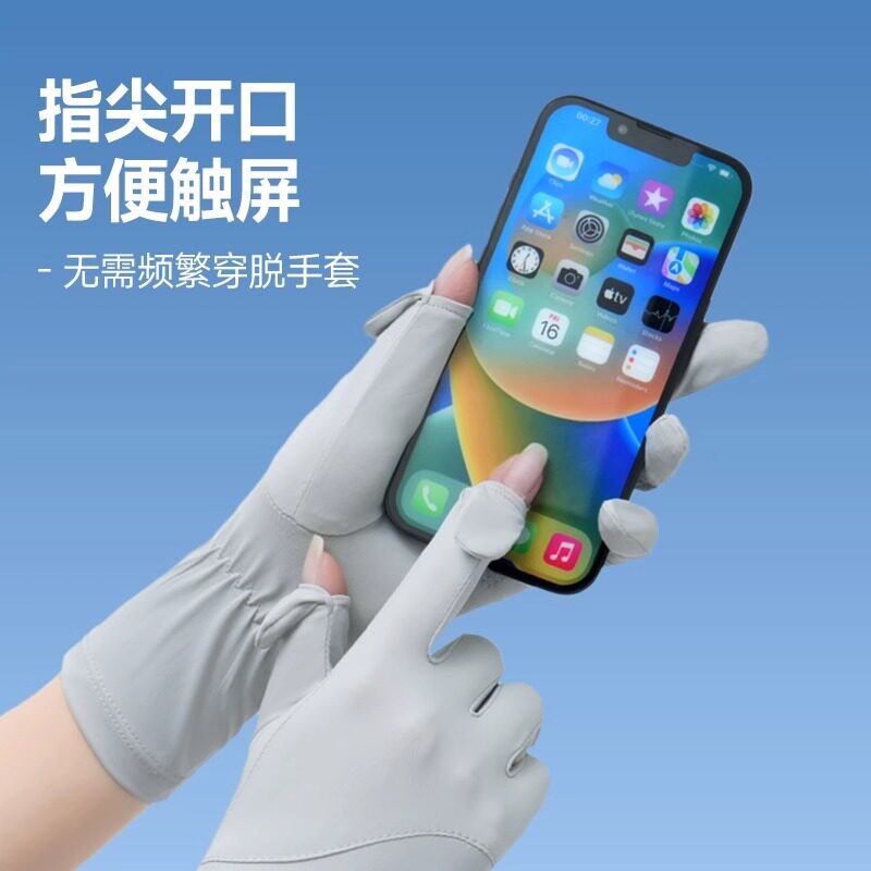 防晒手套女防紫外线露二指触屏冰丝袖套夏季遮阳骑行电动专用薄款