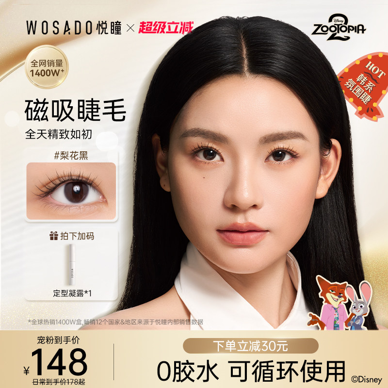 【自然款】WOSADO悦瞳疯狂动物城2025新款软磁吸眼假睫毛素颜免胶