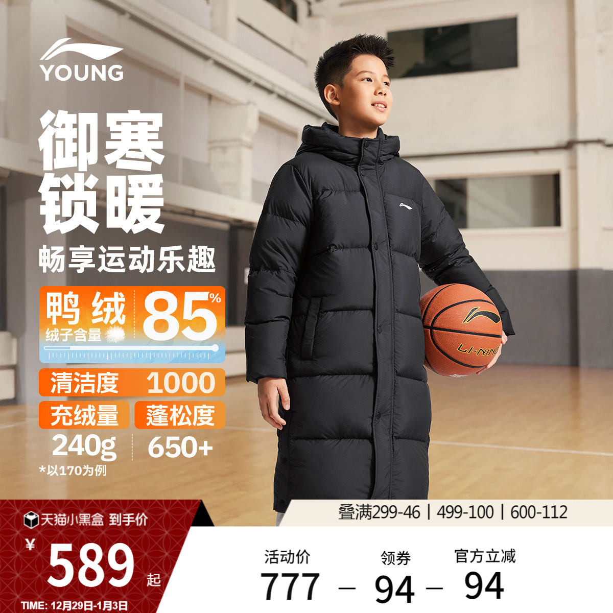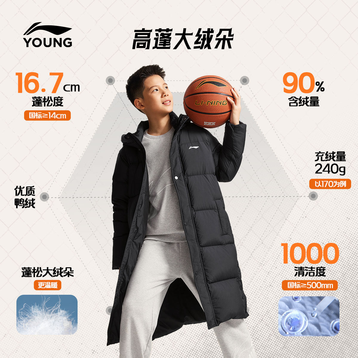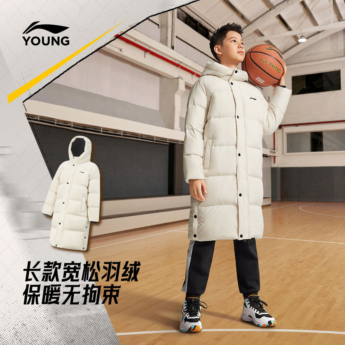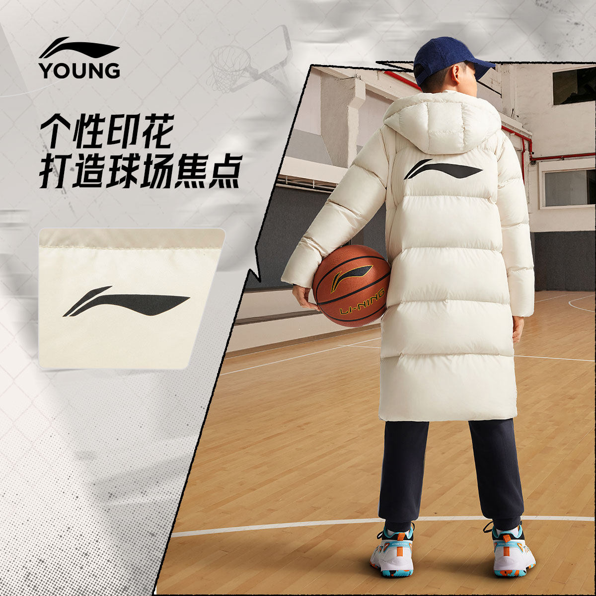 李宁童装长款长羽绒服男女大童新款保暖篮球系列连帽上衣冬季童装
