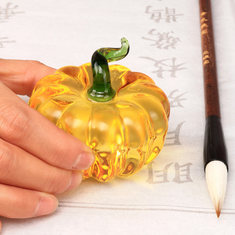 买一送一水晶玻璃镇纸家居装饰摆件创意水晶南瓜镇纸镇尺书法笔架练字笔搁文房四宝创意玻璃镇尺压纸文房毛笔