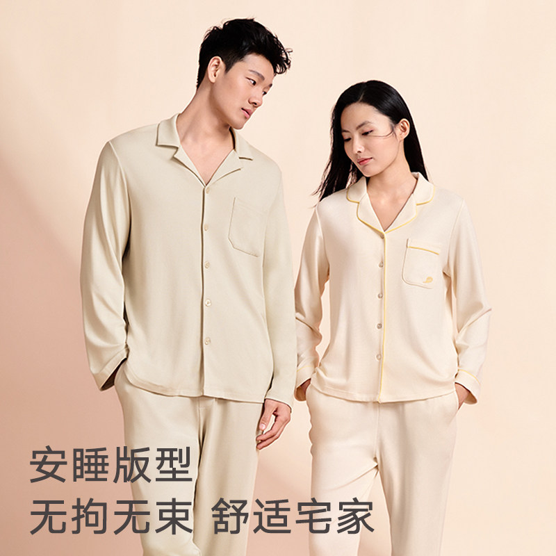 曼妮芬情侣睡衣男女秋冬莫代尔家居服长袖长裤高级家居时尚套装
