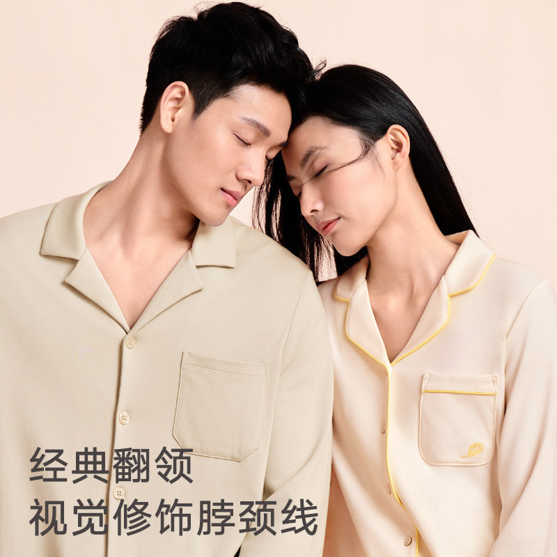 安比斯情侣睡衣舒适纯棉秋季女长袖男女同款休闲家居服套装可出门